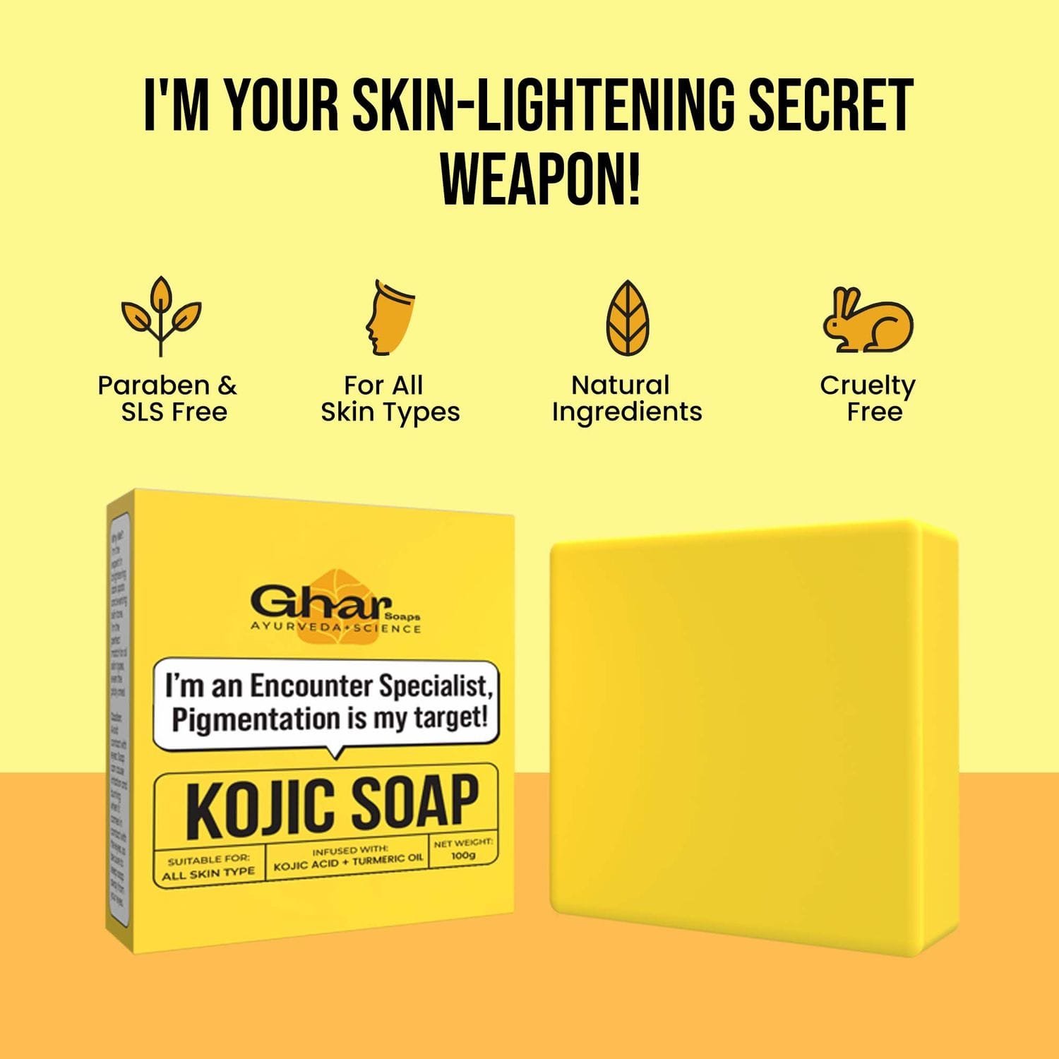 Kojic acid soap, pigmentation soap, dark spot removal soap, skin whitening soap, turmeric soap, underarm whitening soap, kojic soap for body, best soap for pigmentation in India .